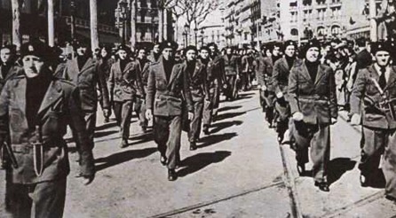 su desfile por Barcelona (3 de marzo de 1937) a causa de sus uniformes de
