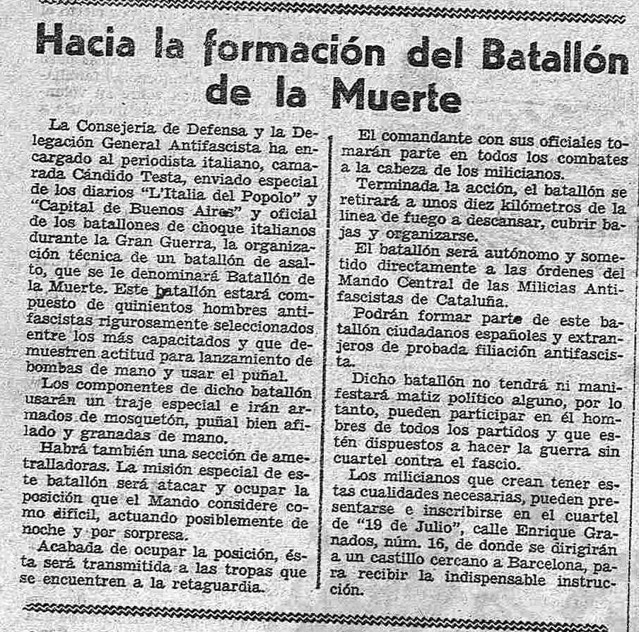 “Giustitia e Libertá” y “Batallón de la Muerte”. Explica que el Batallón de la